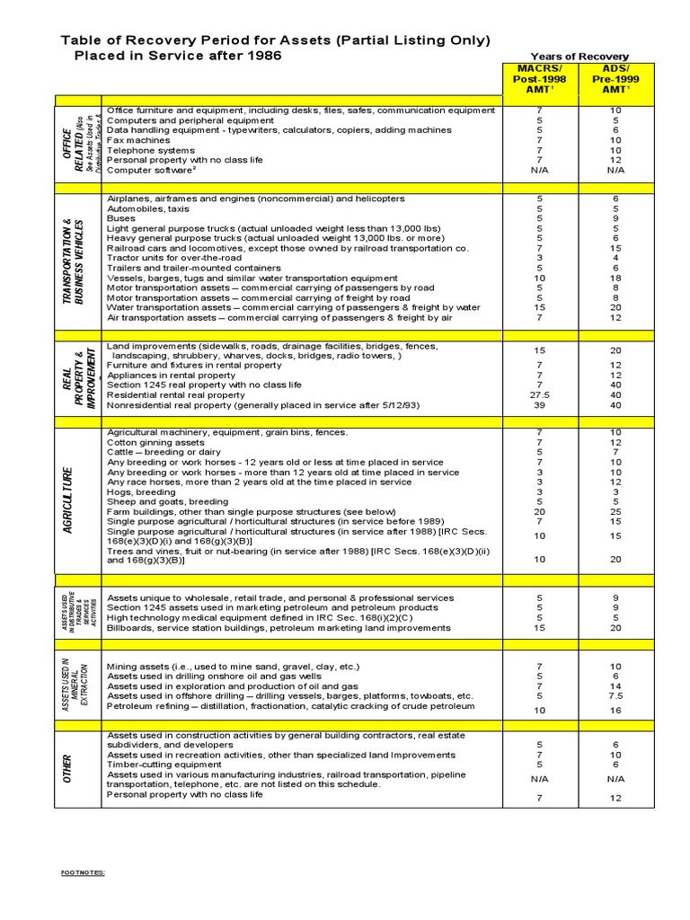 Table Of Recovery Period For Assets Partial Listing Only Placed In Service After 1986 Transport Petroleum No Bike Artinyacs Go Remove Workshop Maps